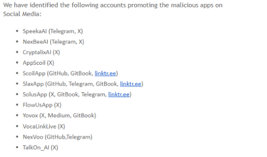 In that report, they list “AppScoil (X)” and “ScoilApp (GitHub, GitBook, linktree)” as part of the infrastructure around a malware campaign.